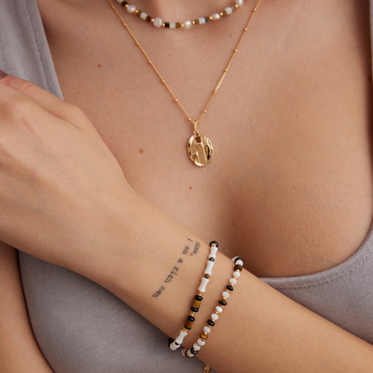 Discover a stunning collection of bracelets that add effortless and subtle class to every outfit. Whether you prefer minimalist chains or beaded gemstone chains, we have the perfect pieces for every occasion.